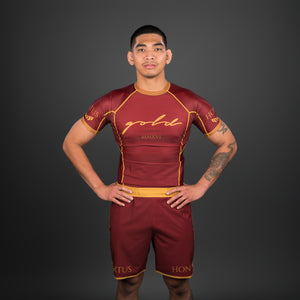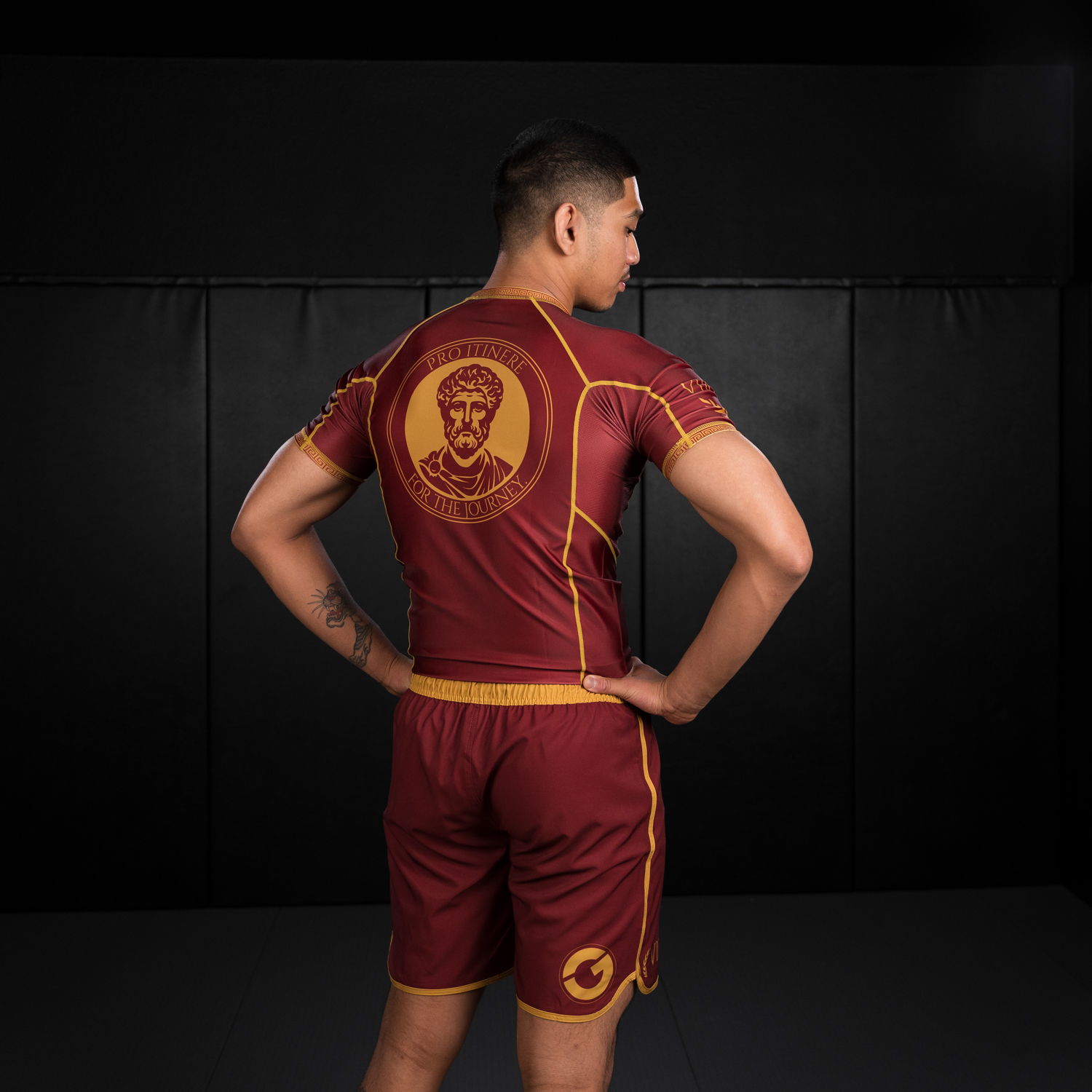 The official pro model no-gi kit of Abraham La Montagne, the Aurelius set draws from stoic roots - calm under pressure, disciplined in every exchange. Pick up the rash guard and shorts together in this bundle and save on the complete kit.