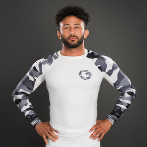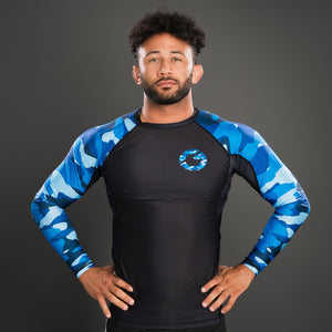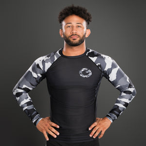 Our Camo Rash Guard is the flagship of our no-gi lineup. It's made with a durable polyblend, and we added mesh underarm vents for extra breathability.