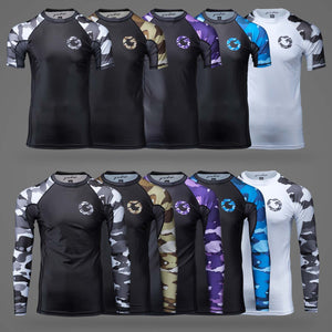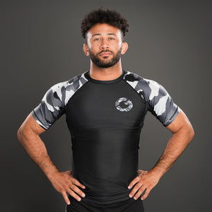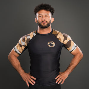 Our Camo rash guard is perfect for no-gi days. Now available in both short and long sleeve!
