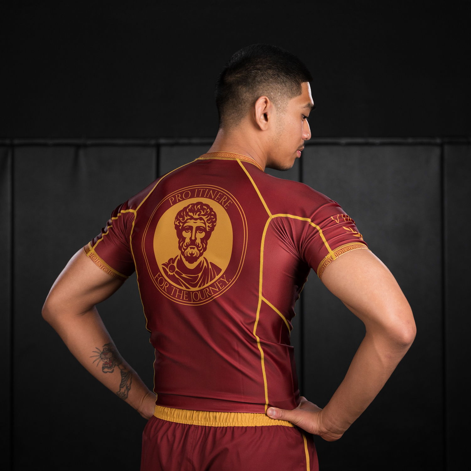 The official pro model rash guard of Abraham La Montagne, the Aurelius rash guard features a design inspired by classic Roman aesthetics: clean, composed, and intentional.