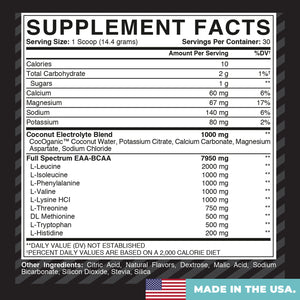 PostRoll's transparent ingredient deck shows exactly how much of each essential acid you're getting in a serving. We added an electrolyte blend and naturally flavored postRoll with a refreshing Lemon Ice profile (no artificial sweeteners!).