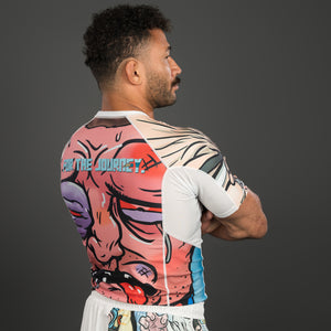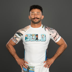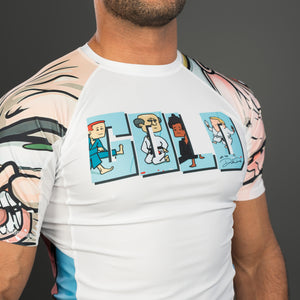 Designed by athlete and artist “Dubious” Dom Bell, this no-gi rash guard blends high-performance construction with original hand-drawn artwork.