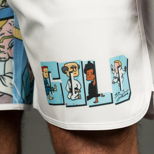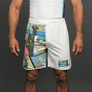 Designed by athlete and artist “Dubious” Dom Bell, these no-gi shorts blend high-performance construction with original hand-drawn artwork.